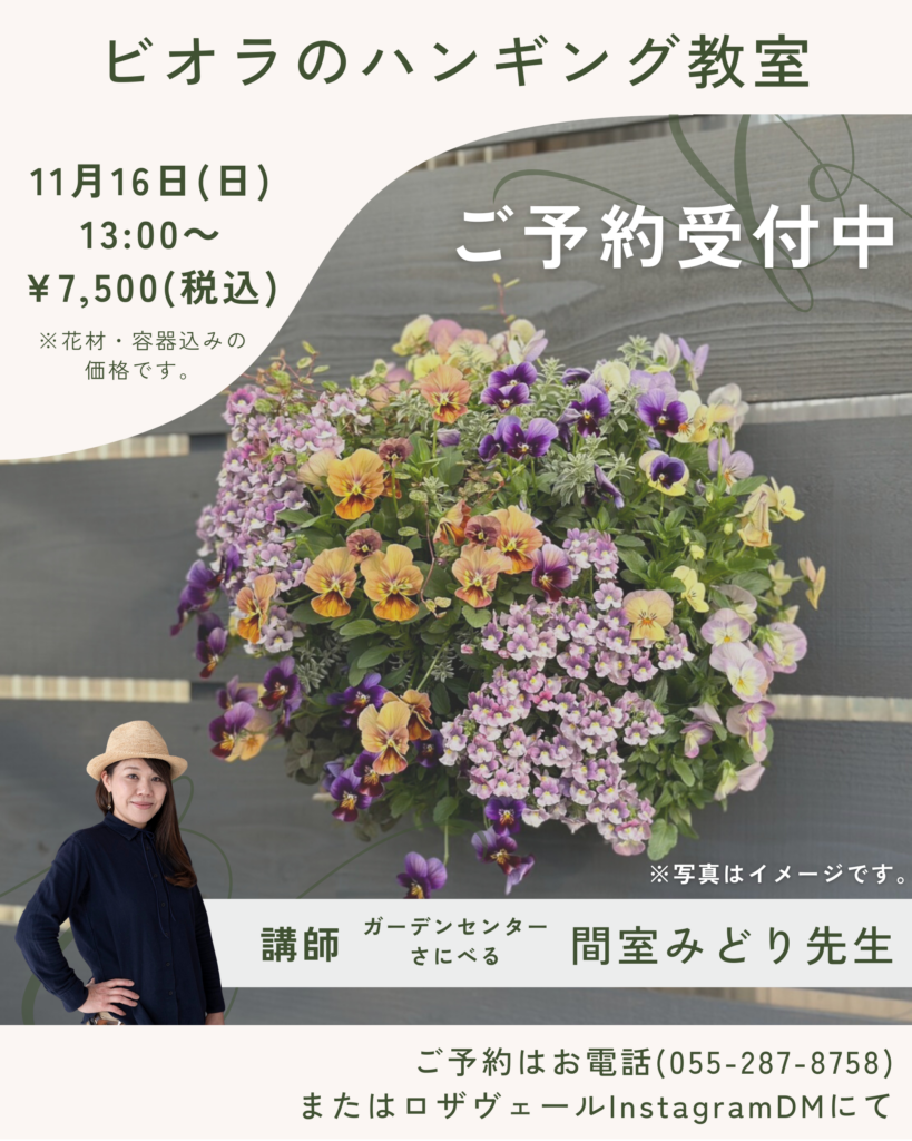 今回はビオラを中心に春先まで楽しめるハンギングバスケットを制作します。
